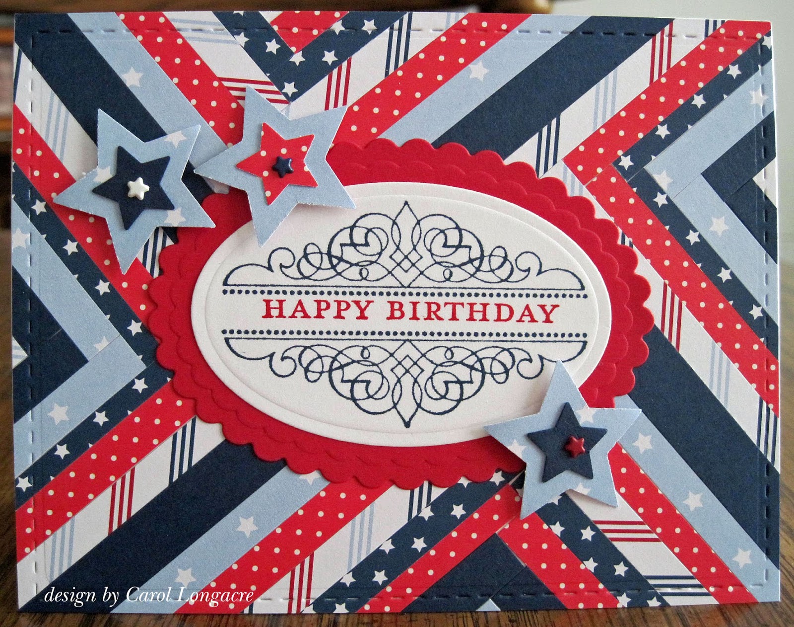 What a fun and festive birthday card Carol! I bet it is fun having a birthday on the 4th of July too. lol Hugs, Brenda