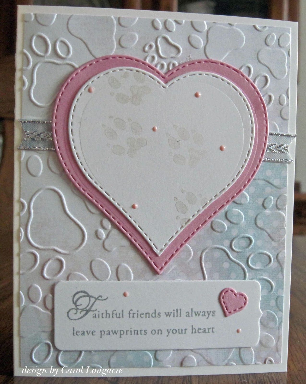 Lovely card, Carol. It's not easy to create a card for a sad occasion such as this, but your card is perfect. I love the subtle paw prints on the heart. xx